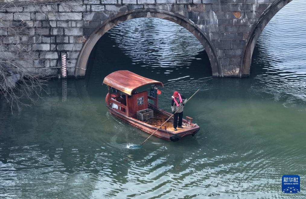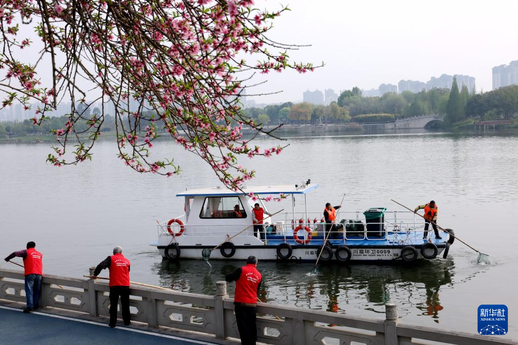 澳门娱乐平台责任主谈主员在江苏扬州瘦西湖风物区的湖面上打捞飘舞物(无东谈主机相片)。 3月22日是第三十四届“寰宇水日”。3月22日至28日是第三十九届“中国水周”。各地举行丰富各种的主题步履,增强东谈主们的节水护水果断。 新华社发(孟德龙摄)" />
