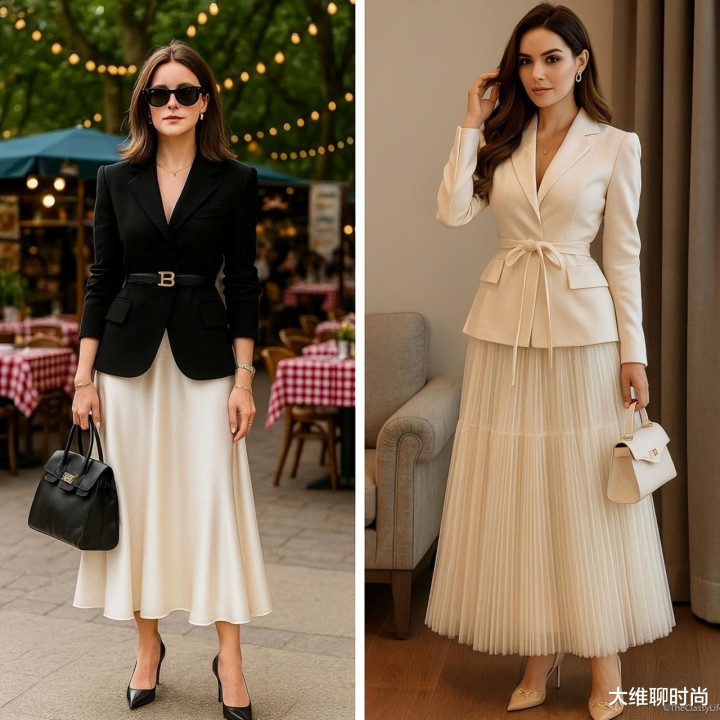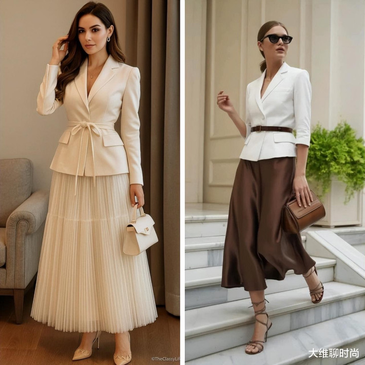 这款让东谈主倍感怀旧的短袖西装,一朝系上宽腰带,一刹就会让东谈主嗅觉穿越回曩昔。提议搭配带有失业感的西部格调细腰带,营造出卤莽耐心的氛围。当然的立体剪裁与这款甜度适中的蓬松半身裙搭配起来,比例恰到克己。