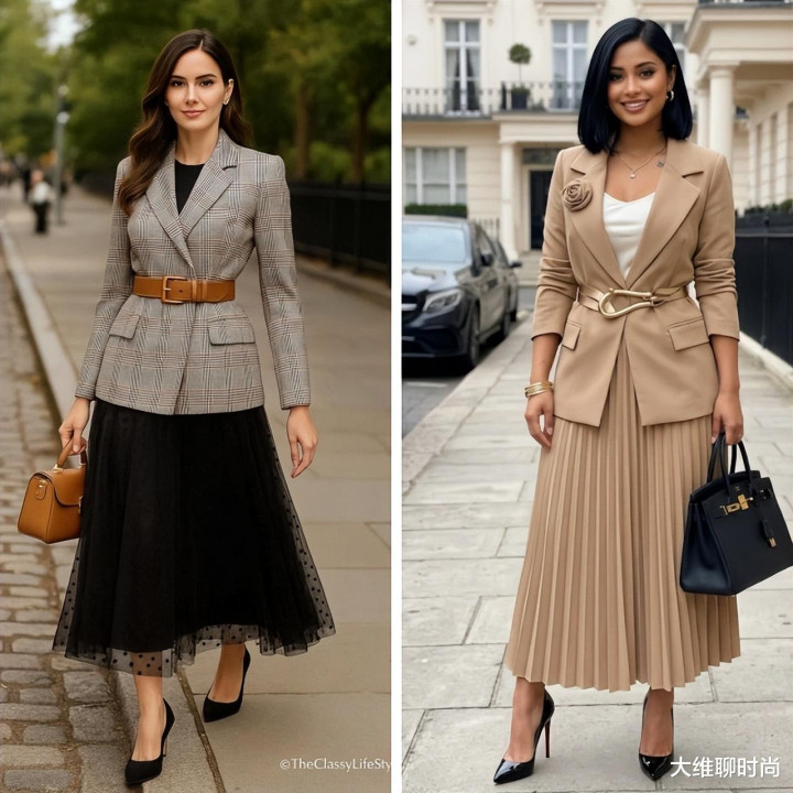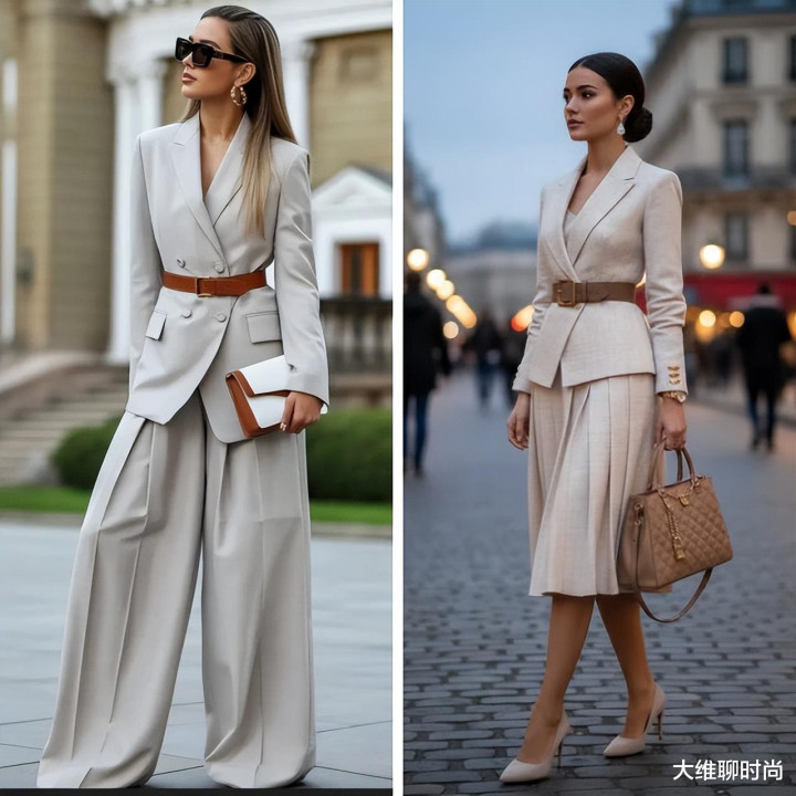 通过腰带的玄妙行使,不仅不错拉长腿部线条,还能塑造出更显瘦的视觉效力。今春,越来越多的先锋达东谈主纷繁将这两者采集,赋予了传统西装新的生命力,成为大街衖堂的亮点。