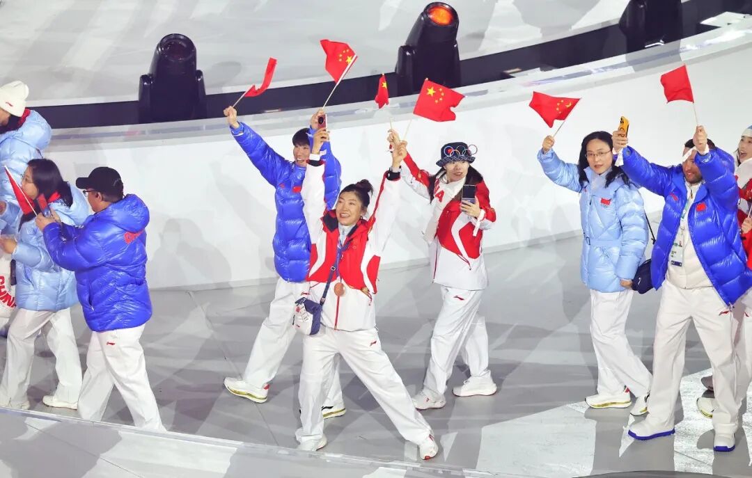 中国代表团的旗头是单板滑雪意见员苏翊鸣