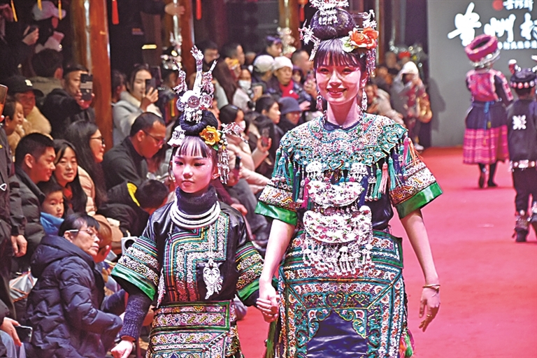 “往常春节在家走亲戚,本年开门作念商业。”从台江县到凯里市开店的苗族匠东谈主赵海波,正向旅客关怀展示着各类邃密的银饰:“咱们把传统本事和潮水缠绵聚合,好多主顾看完走秀来选首饰,商业可好喽。”