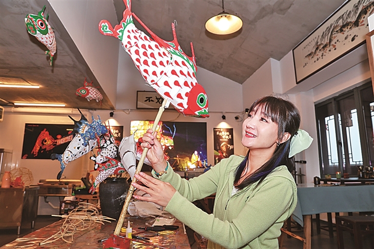 阛阓上,鱼灯制作体验摊位前围满了酷好的年青东谈主;展区里,传统的鱼灯与前锋品牌跨界联名的案例引东谈主立足。