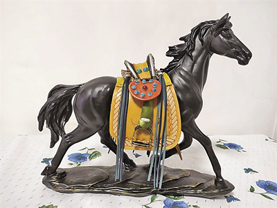 蒙古族马具制作市级代表性传承东谈主胡长明制作的马鞍摆件。通辽市科左后旗文化馆供图