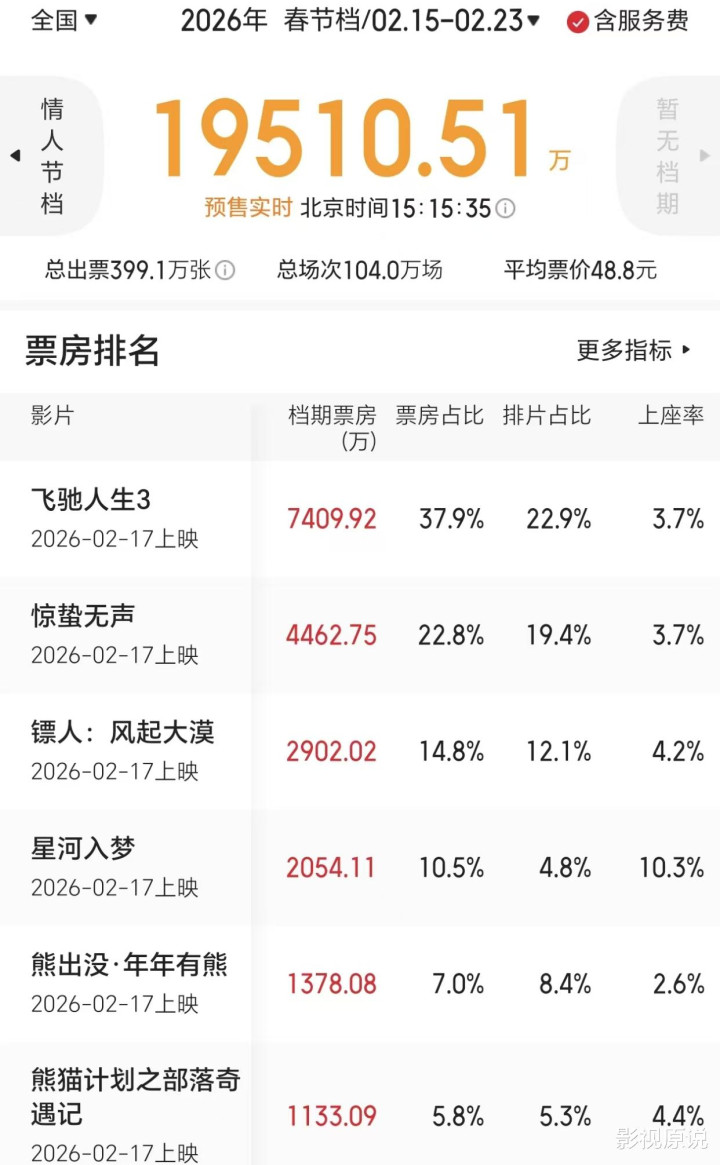 自此,《熊猫筹办2》在本年春节档的六部新片中,径直垫底了。揣摸到临了,该片的最终票房很难达到3亿东说念主民币,大略率会处于倒数第又名。