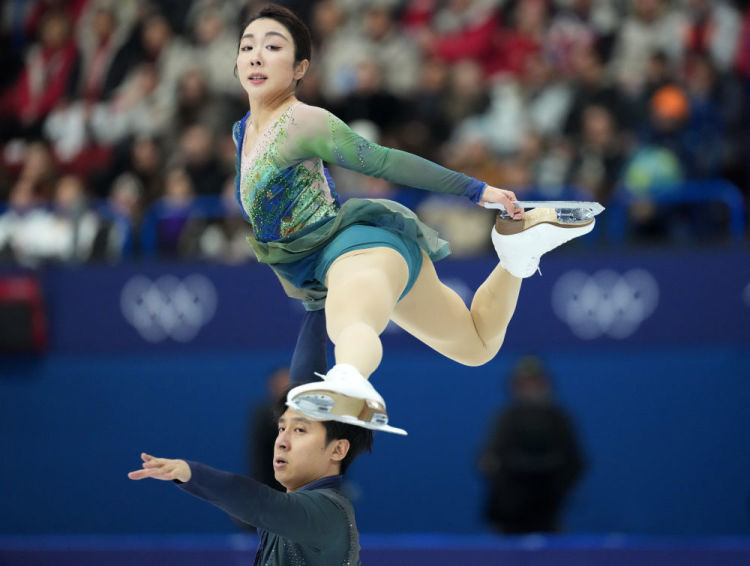 2月16日,中国选手隋爱静(上)/韩聪在双人滑解放滑比赛中。新华社记者 薛宇舸 摄