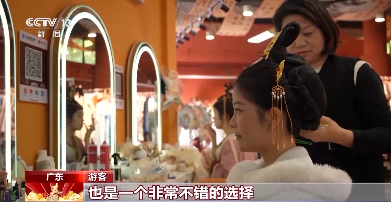 汉服出租谈论户:假期时间每天都有几百个来宾过来化妆,非凡是年青的女孩子。穿上古代的服装就好像穿越了,还能偶碰到剧组当个群演,挺应承的。