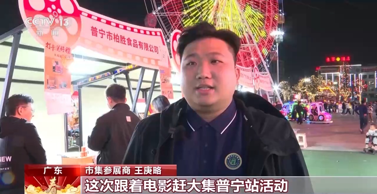 在广东省揭阳市普宁市,“随着电影赶大集”以光影为媒、以市集为桥,让市民旅客感受到了浓浓的新春祝愿。